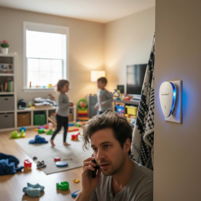 Absolutely not. QuietGuard™ Pro is engineered to be ultra-silent and completely chemical-free, ensuring it's 100% safe and undetectable to everyone in your home, including the little ones and furry friends. Enjoy peace without worry!