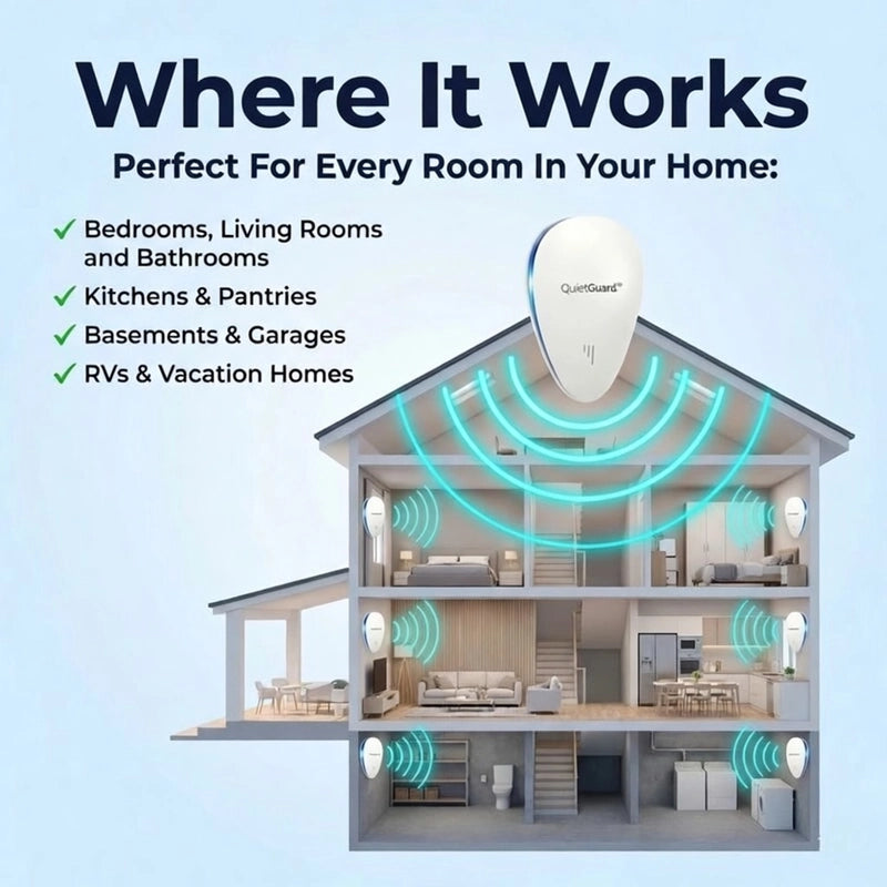 Set it and forget it. QuietGuard™ Pro's smart adaptive frequency works tirelessly in the background, keeping your sanctuary undisturbed, day and night. Pure magic.